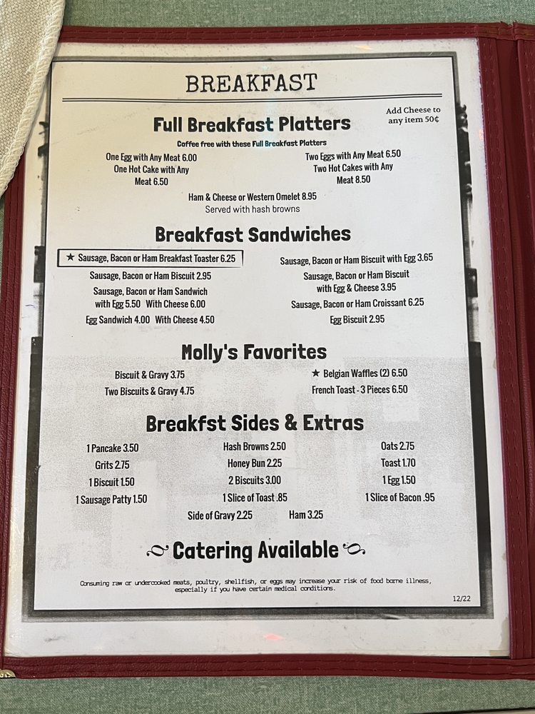Expect mouthwatering plates and a friendly vibe—Molly's Diner is where good food meets great company.